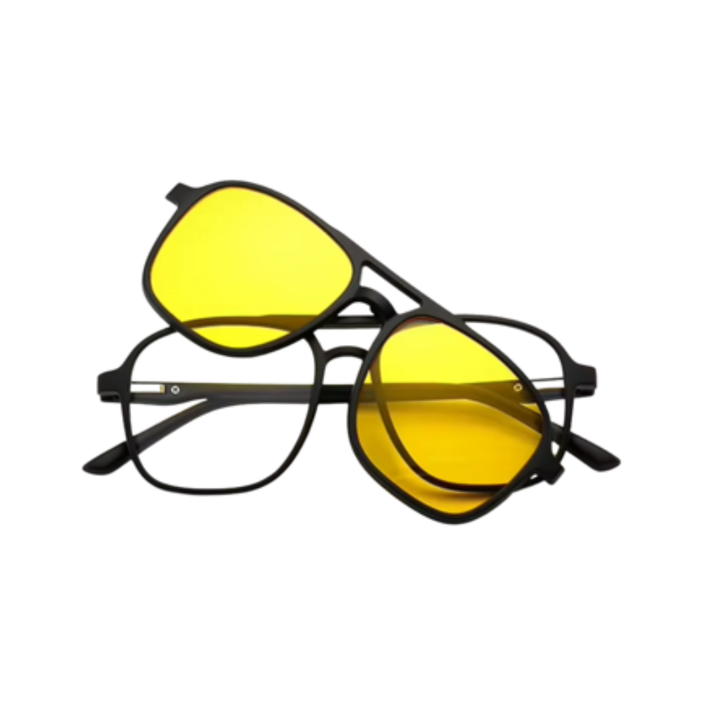 El juego incluye cinco sobrepuestos magnéticos que se adhieren a la montura de forma rápida y precisa. Cada clip está diseñado para una condición de luz o una actividad específica, ofreciendo una solución integral para el cuidado de tus ojos: